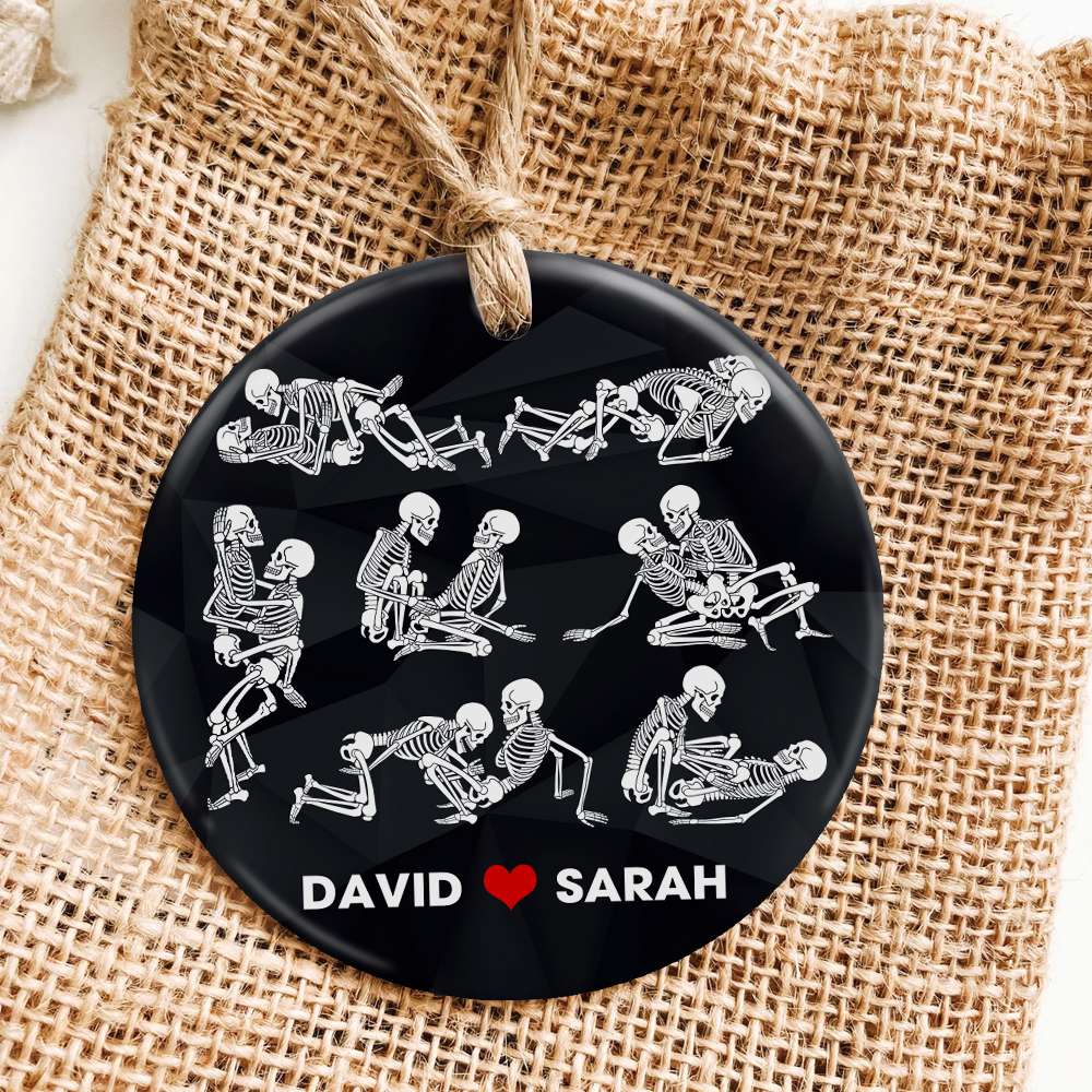Maxcorners Personalized Black Rose Heart Shape Skeleton Couple Christmas - Ornament