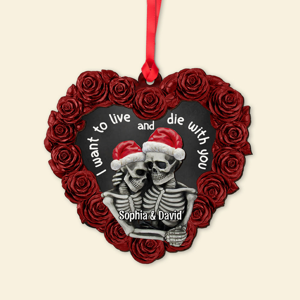 Maxcorners Personalized Skeleton Couple Black Rose Heart Shape - Ornament