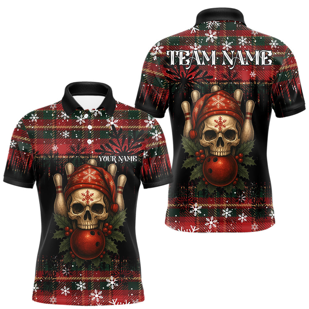 Maxcorners Black & Red Plaid Christmas pattern Skull Bowling Shirts For Men Custom Team Bowling outfit jerseys TU1011