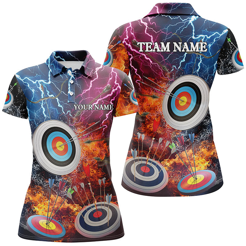 Maxcorners Archery Target In Water Fire Personalized Name Men Polo Shirts Custom Archery Gifts For Archer