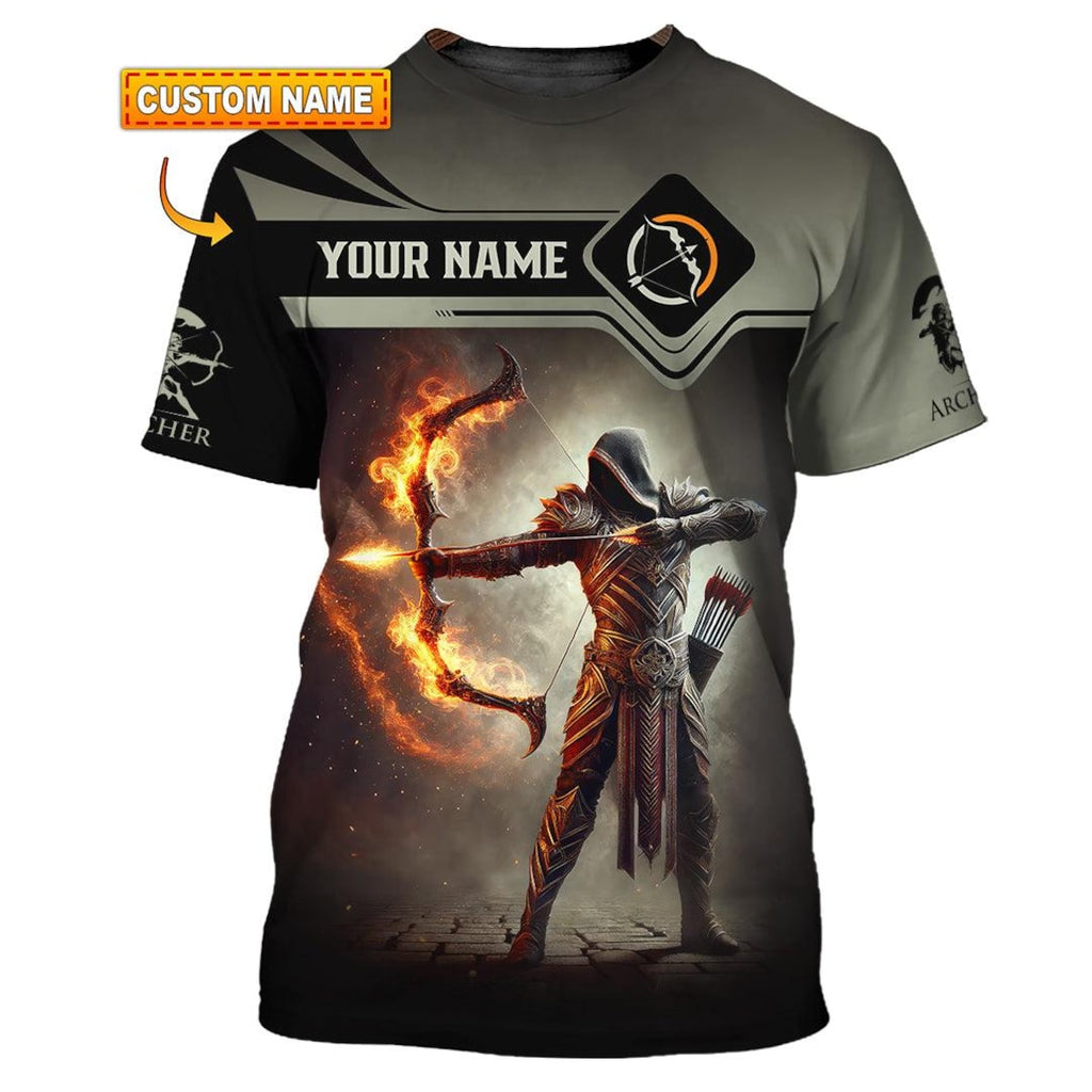 Maxcorners Custom Archery 3D T-Shirt With Fiery Bow Warrior – Personalized Archery Shirt – Gift For Archers & Adventure Enthusiasts