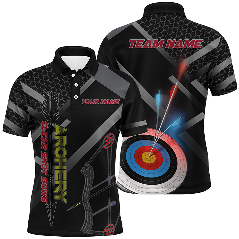 Maxcorners Personalized Clear Shot Bows 3D Target Archery Polo Shirts For Men, Custom Archery Team Shirts