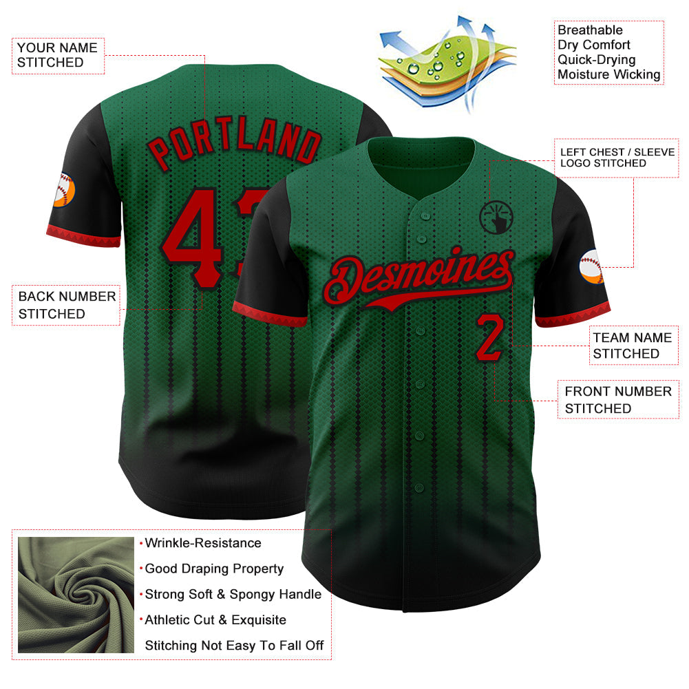 Maxcorners Custom Kelly Green Red-Black 3D Pattern Design Gradient Geometric Shape Premium Baseball Jersey LM0210