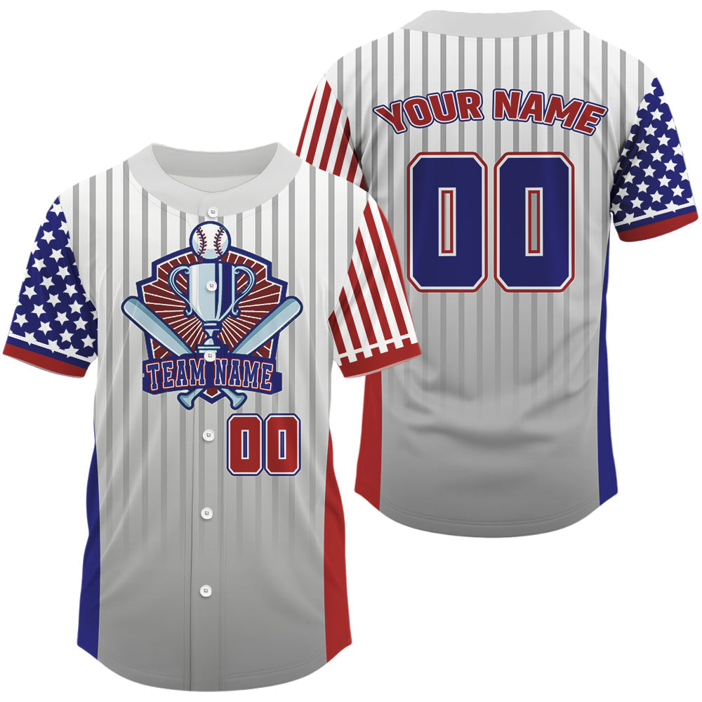 Maxcorners Custom USA Flag Patriotic Baseball Shirt For Men Outfits Blue Red Baseball Jerseys LM2509