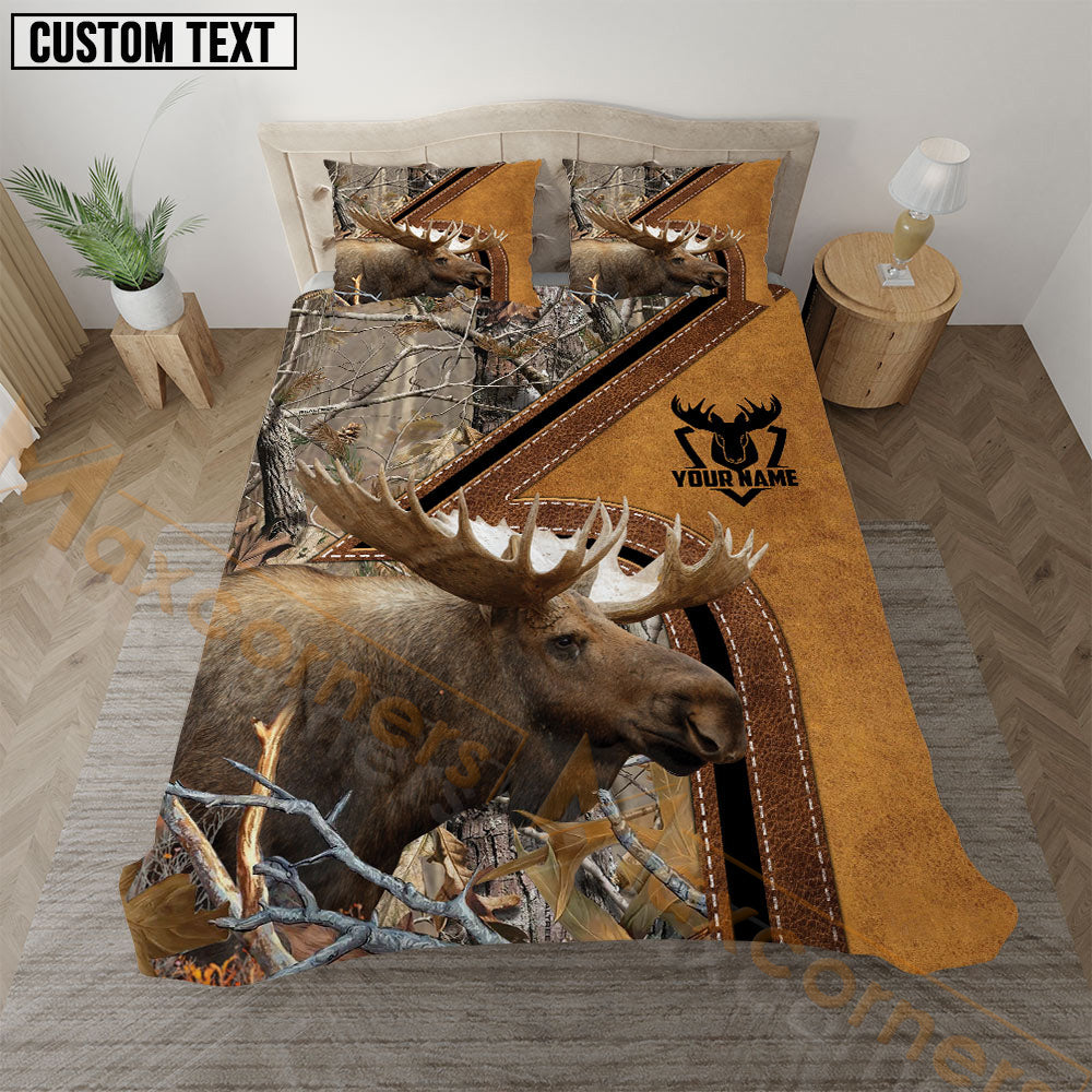 Maxcorners Moose Hunting Grass Brown Camo Real Tree Forest Leather Stripe Bedding Set 3D All Over Printed