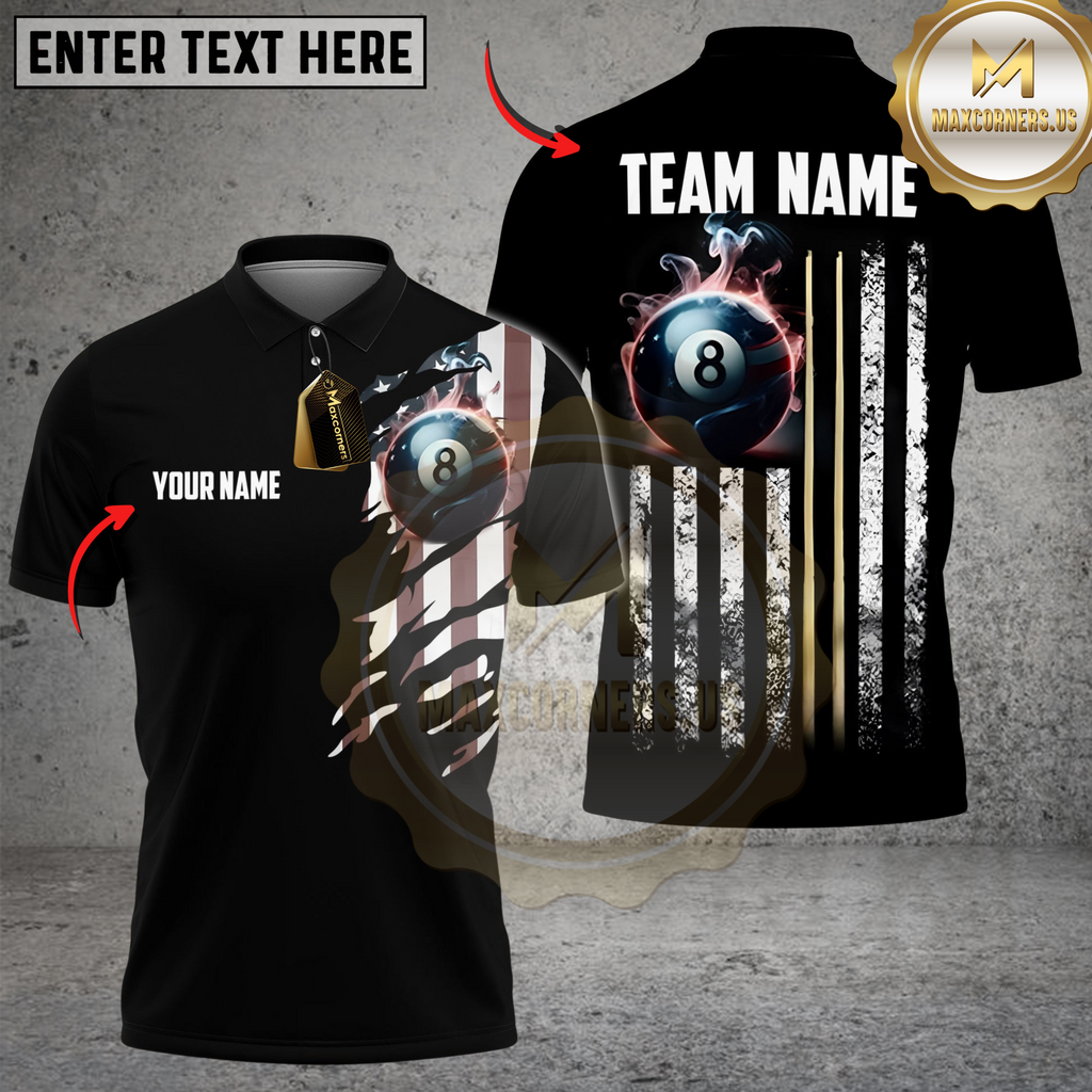 Maxcorners Billiards Ball 8 With USA Flag Stripes Black Personalized Name 3D Unisex Shirt