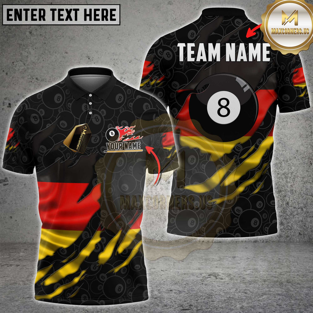 Maxcorners Billiards Germany Torn 8 Ball Flame Flag Personalized Name 3D Unisex Shirt