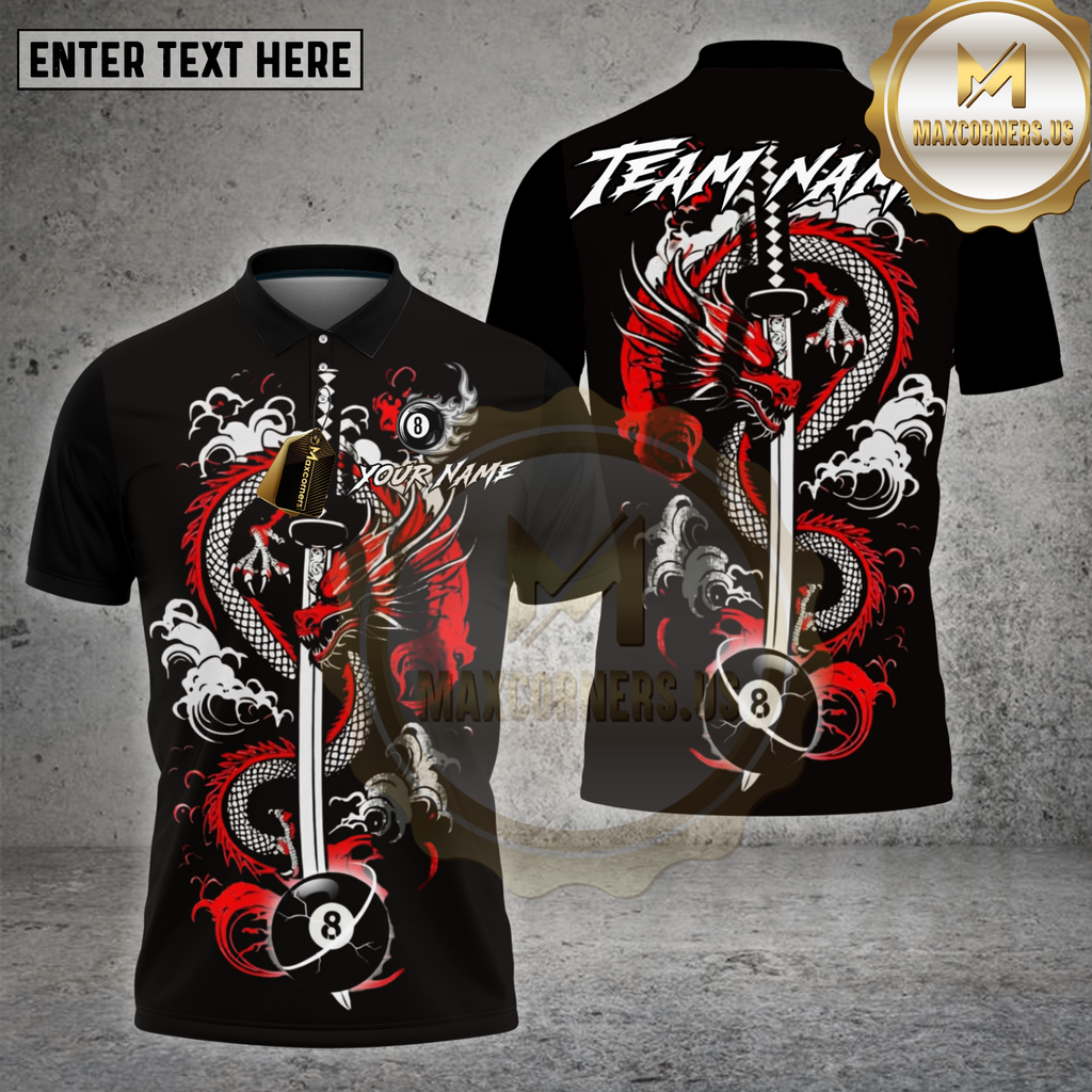 Maxcorners Billiards Shirt Dragon Sword 8 Ball Multioptions Personalized Name, Team Name Unisex 3D Shirt