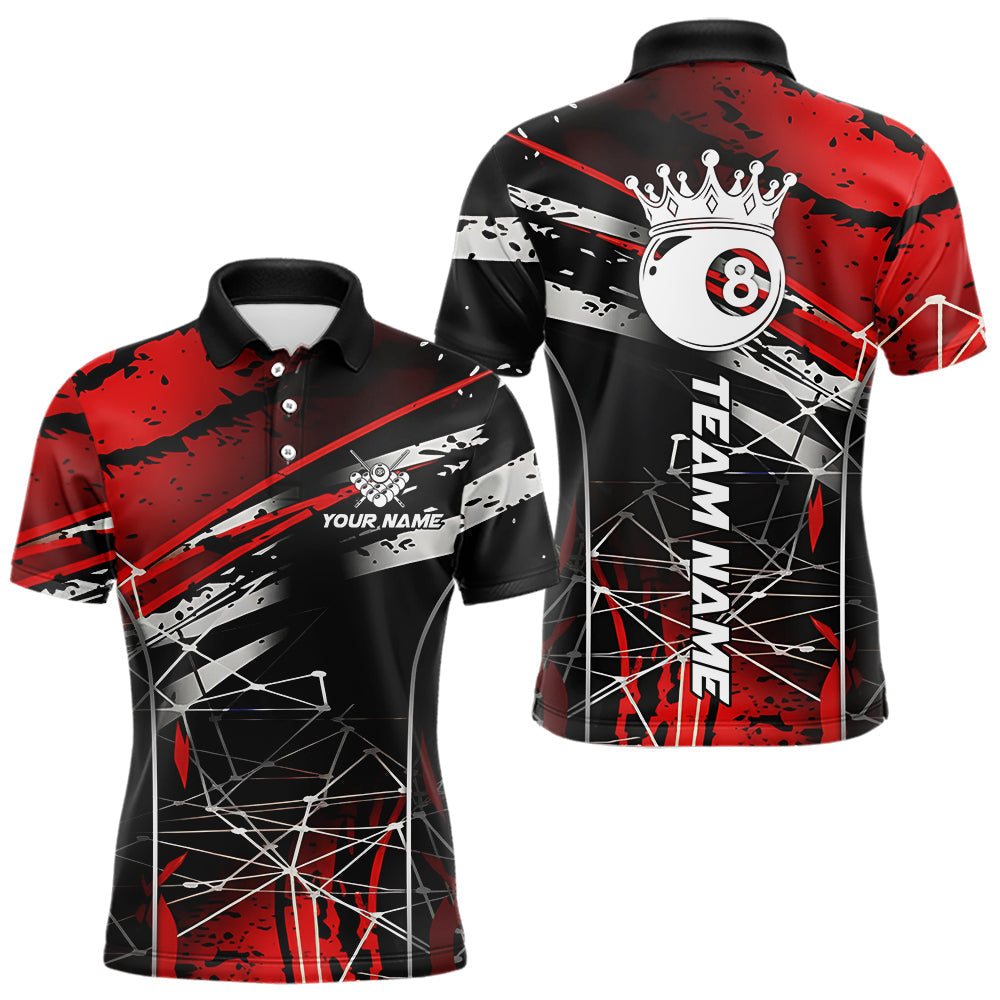 Maxcorners Black And Red 8 Ball Crown Men's Billiard Shirts Custom Billiards Jerseys, Pool League Team Shirts TU2710