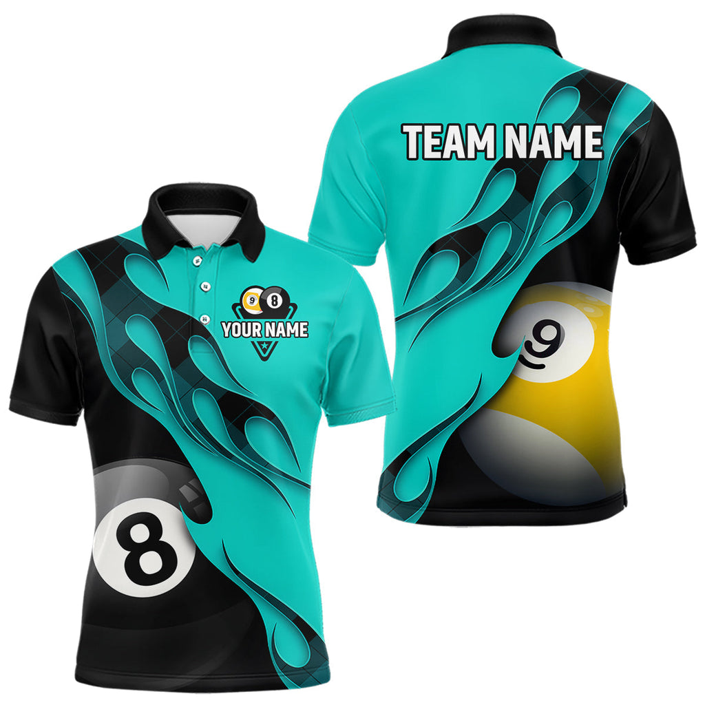 Maxcorners Black And Turquoise Billiard 8 Ball & 9 Ball Pool Shirt For Men Custom Billiard Team Jersey LM0611
