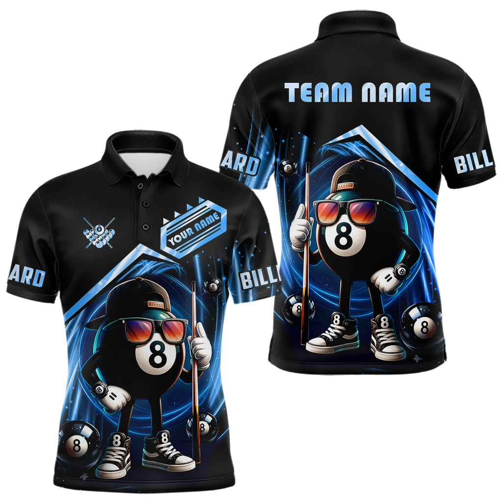 Maxcorners Blue Funny 8 Ball Billiard Shirt For Men Custom Pool Team Shirt, Billiard Jersey Polo & 1/4 Zip MT0811