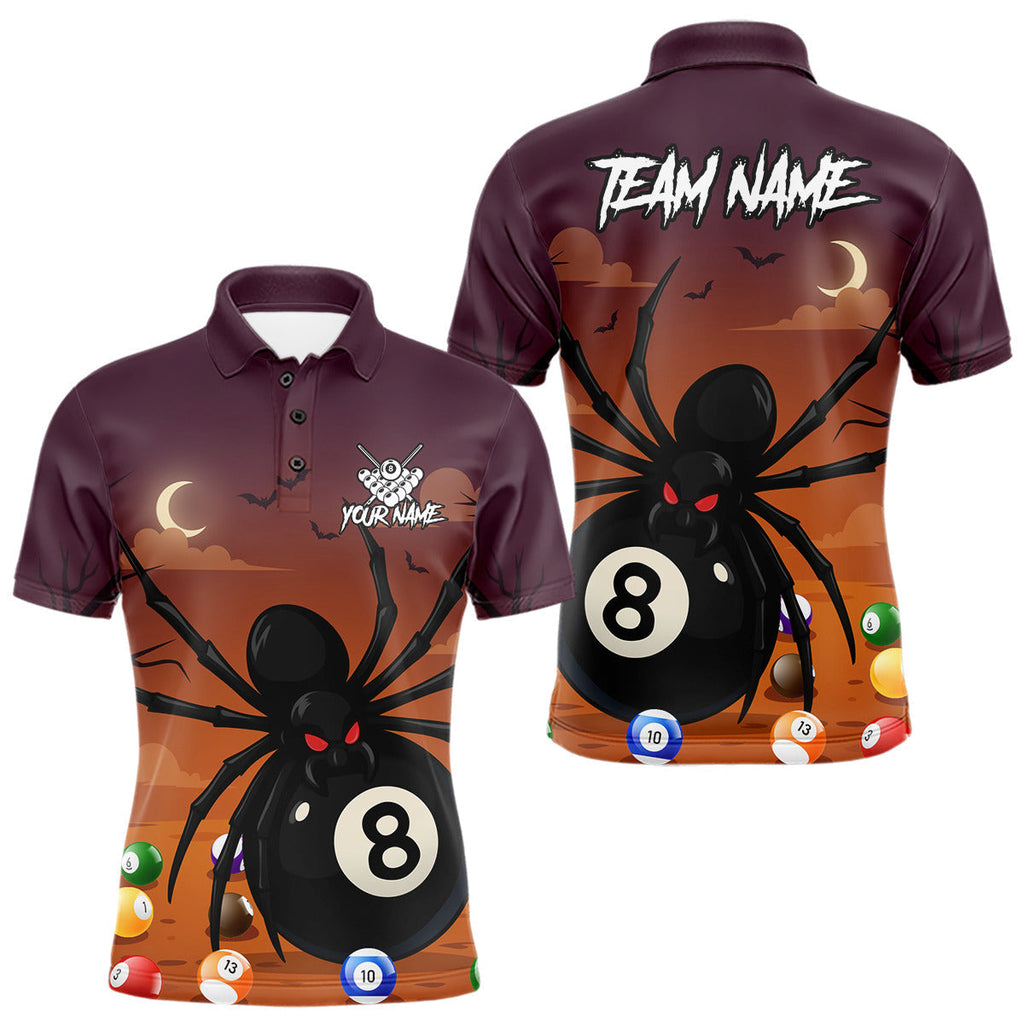 Maxcorners Orange Funny Spider Pool Balls Billiard Shirt For Men Custom 8 Ball Halloween Billiard Apparel LM0210