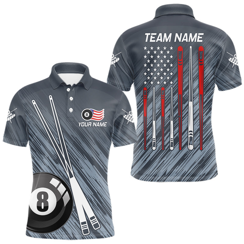 Maxcorners Personalized Billiard US Flag 8 Ball Pool Shirt For Men, Billiard Team Jersey Polo & 1/4 Zip LM0910