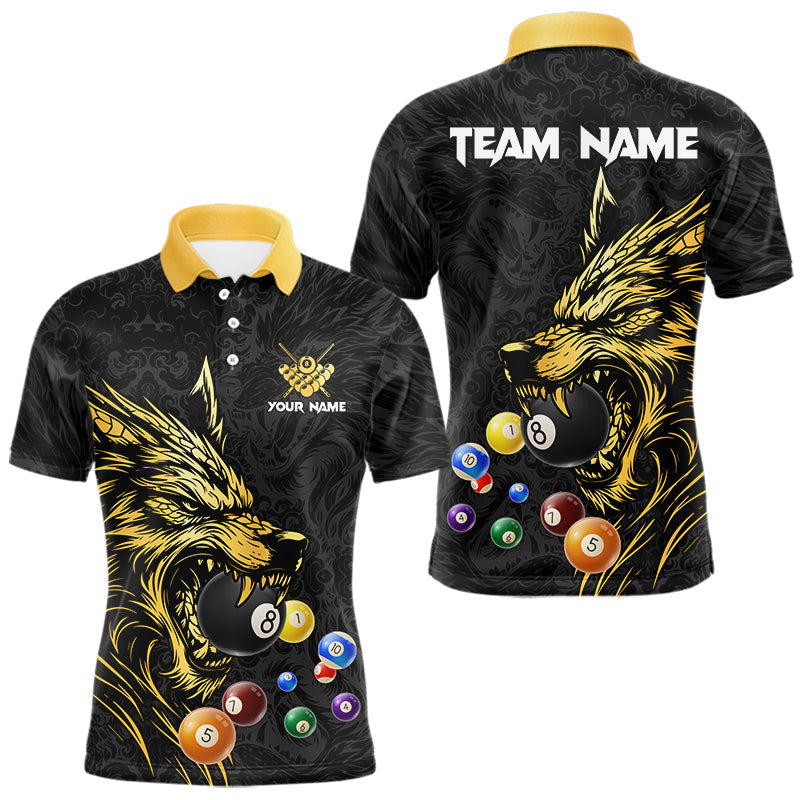Maxcorners Personalized Wolf Billiard Balls Pool Shirts For Men, Black And Gold Billiard League Team Jerseys MT0811