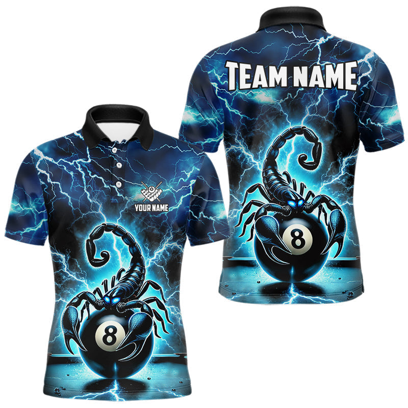 Maxcorners Blue Lightning Thunder Scorpion 8 Ball Pool Polo & 1/4 Zip For Men Custom Billiard Team Jersey MT2009