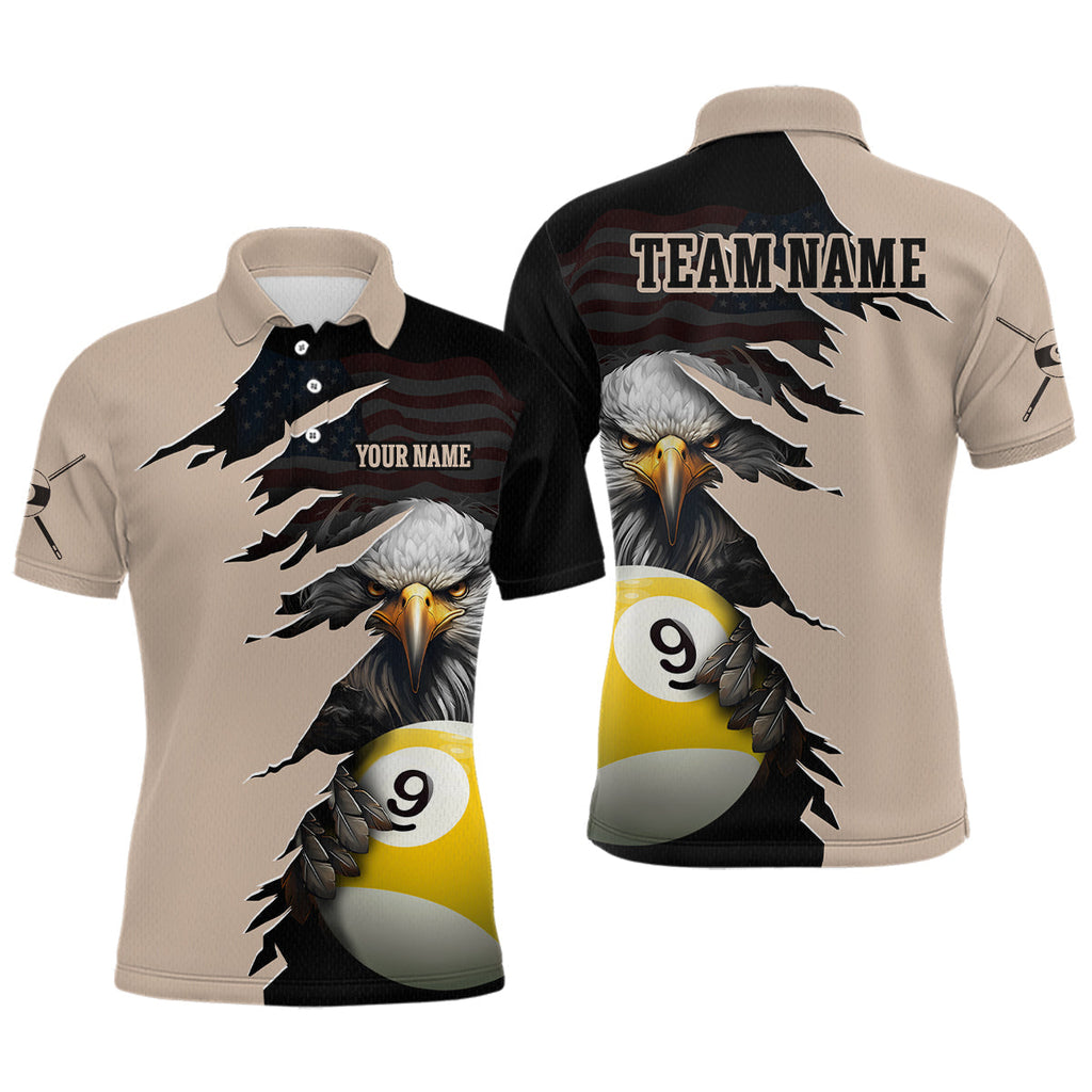 Maxcorners Personalized 9 Ball American Flag Eagle Billiard Shirts for Men Billiard Team Shirts MT707