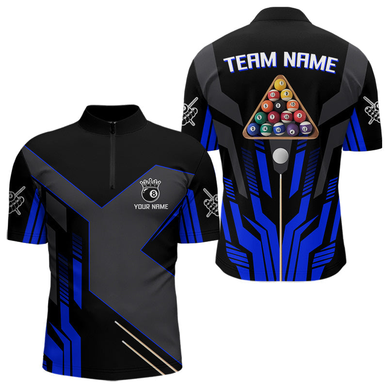 Maxcorners Personalized Blue Black 8 Ball Pool Shirt For Men Custom Billiard League Team Jersey Polo, 1/4 Zip MT2306
