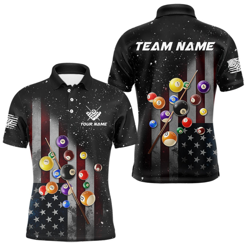 Maxcorners Personalized Patriotic Billiard Jerseys For Men Custom American Flag Grunge Billiard Team Shirt MT2407