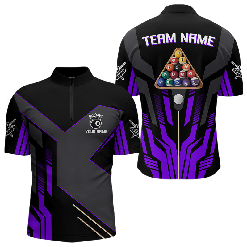 Maxcorners Personalized Purple Black 8 Ball Pool Shirt For Men, Billiard League Team Jersey Polo & 1/4 Zip MT2306