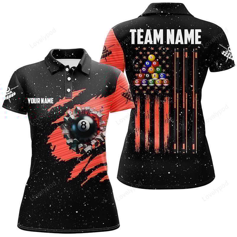 Maxcorners Customized Grunge American Flag 8 Ball Pool Women Billiard Polo Shirts