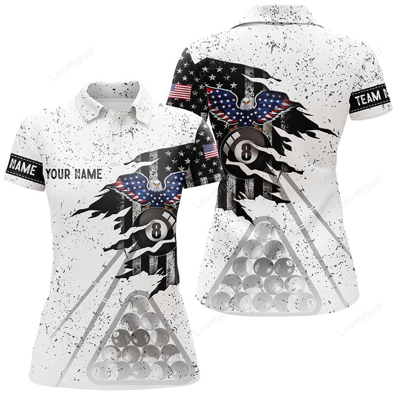 Maxcorners Personalized Eagle US Flag Billiard Black White Grunge 3D Polo Shirts For Women