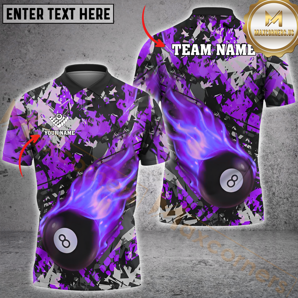 Maxcorners Billiard Flaming 8-Ball Multicolor Options Personalized Name, Team Name 3D Shirt