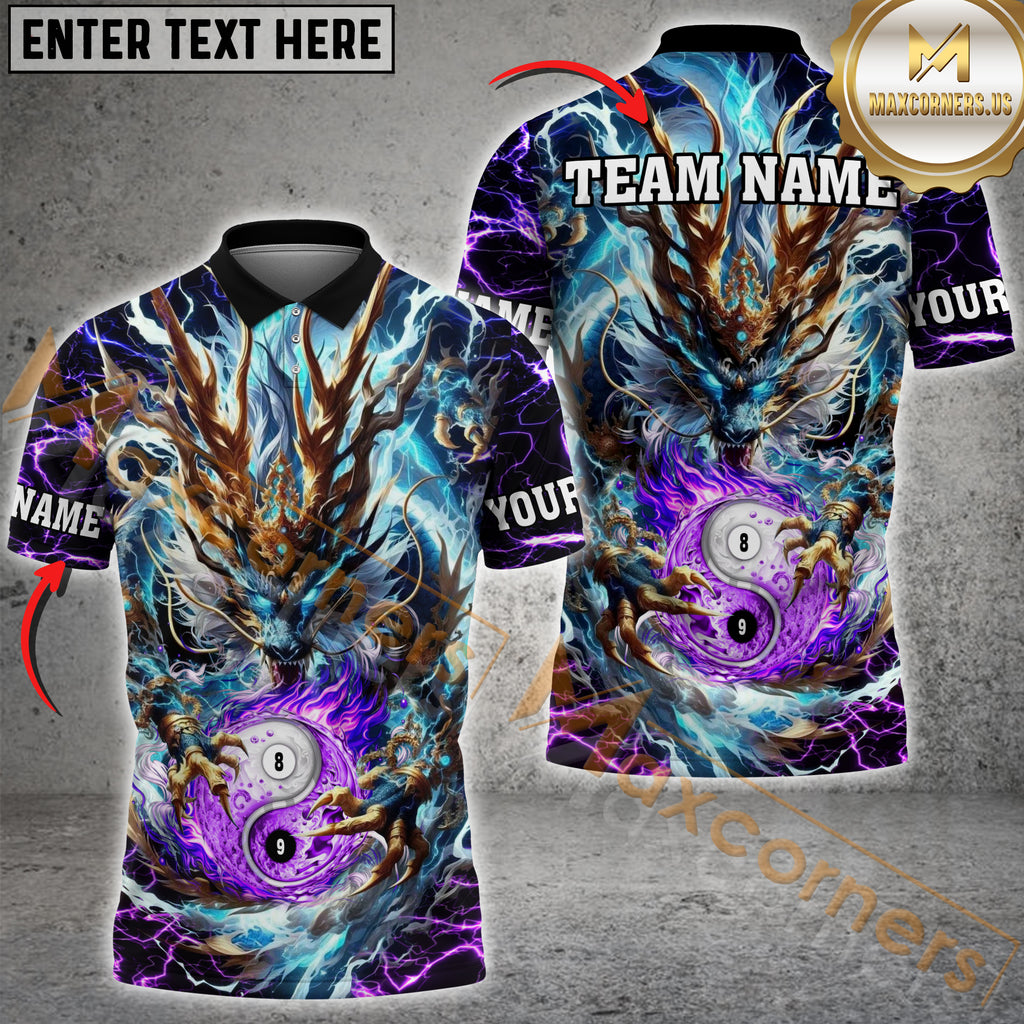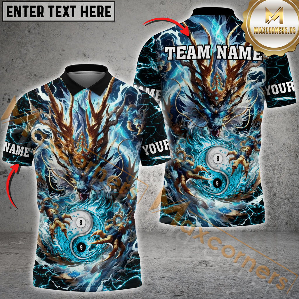 Maxcorners Billiard Mystic Storm Dragon Yin Yang Multicolor Personalized Name, Team Name 3D Shirt
