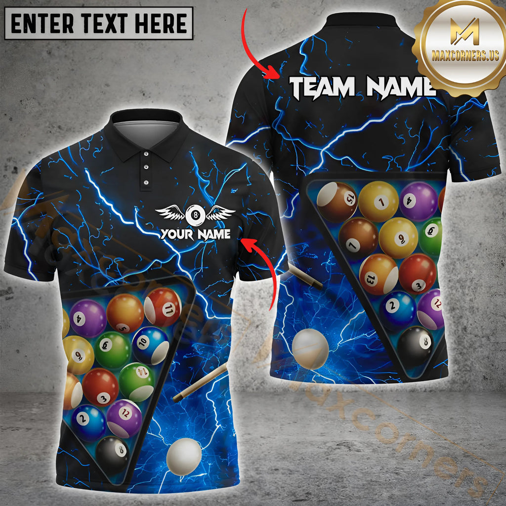 Maxcorners Billiard Pool Thunder Lightning Multicolor Options Personalized Name, Team Name 3D Shirt