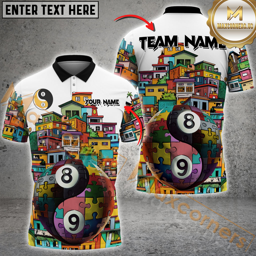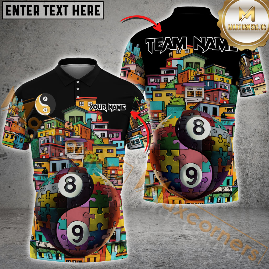 Maxcorners Billiard Urban Art With Puzzle Piece Personalized Name, Team Name 3D Shirt