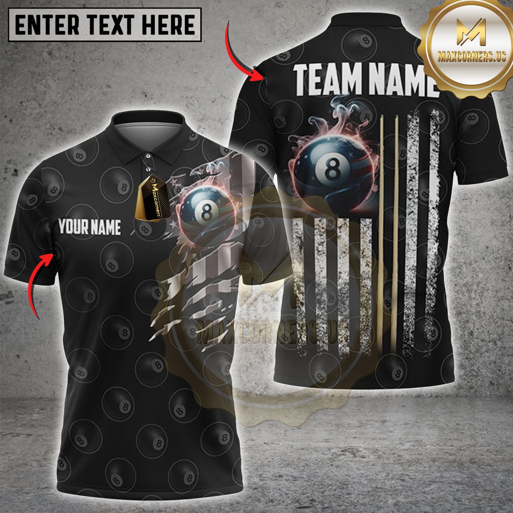 Maxcorners Billiards 8-Ball With USA Flag Stripes Personalized Name 3D Unisex Shirt