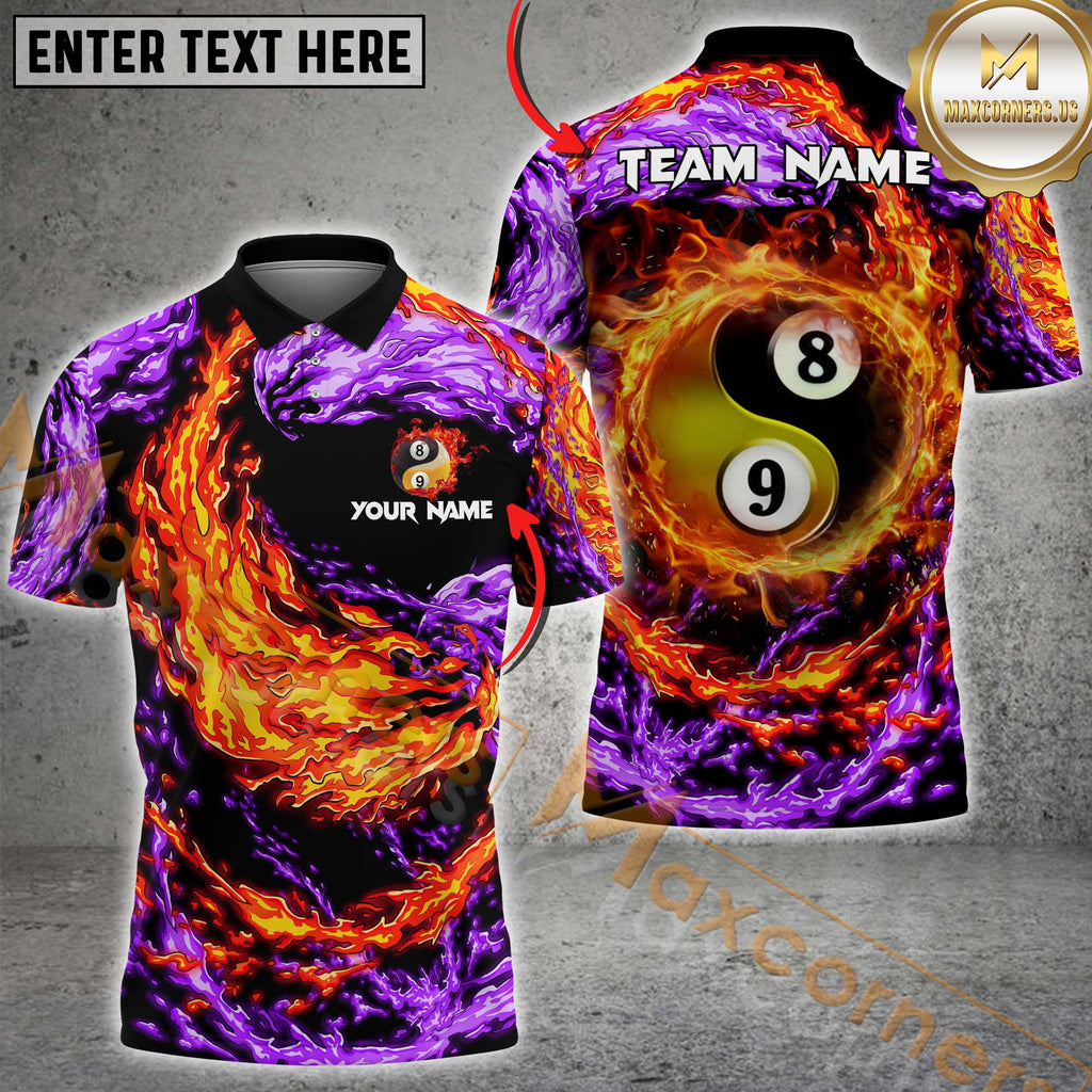 Maxcorners Billiard Yin Yang Fire & Ice Multicolor Customized Name, Team Name 3D Shirt