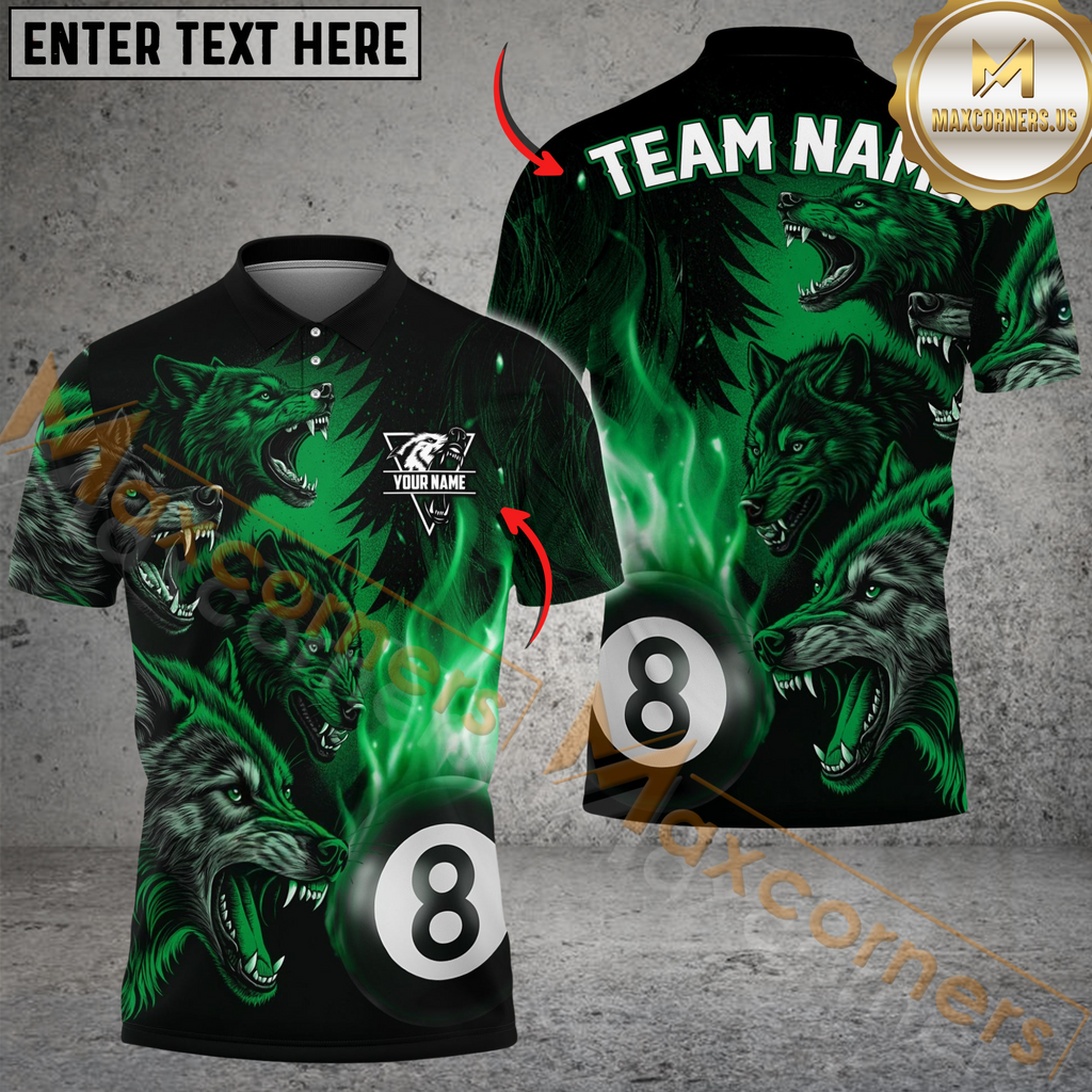 Maxcorners Billiards 8-Ball Fire Wolfpack Multicolor Customized Name, Team Name 3D Shirt