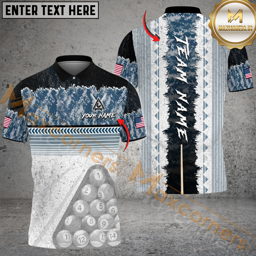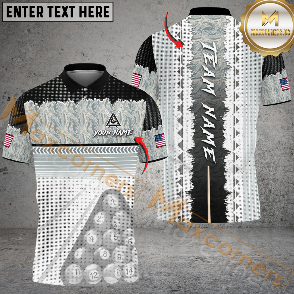 Maxcorners Billiards 8 Ball Pool Camo Stick Multicolor Customized Name, Team Name 3D Shirt
