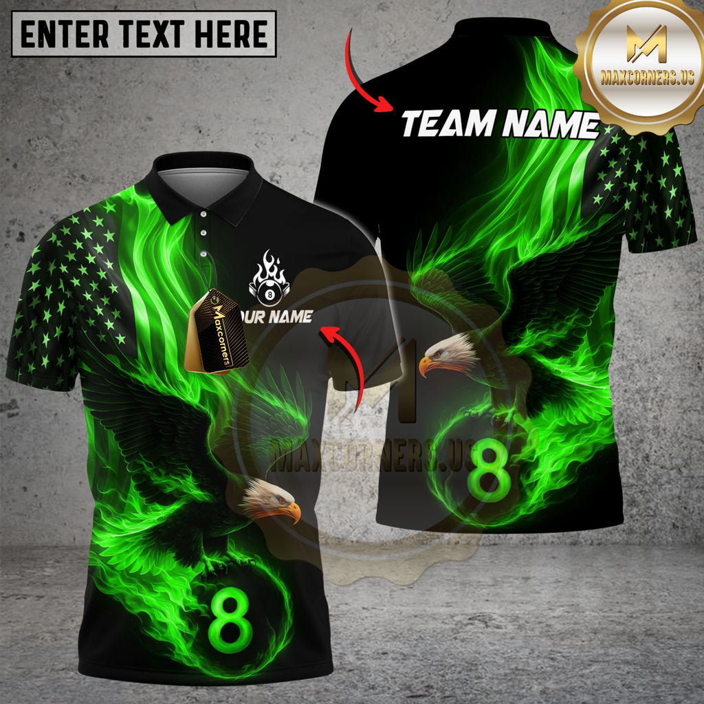 Maxcorners Billiard Ball 8 Eagle Flag Flame Personalized Name Shirt (4 Colors)