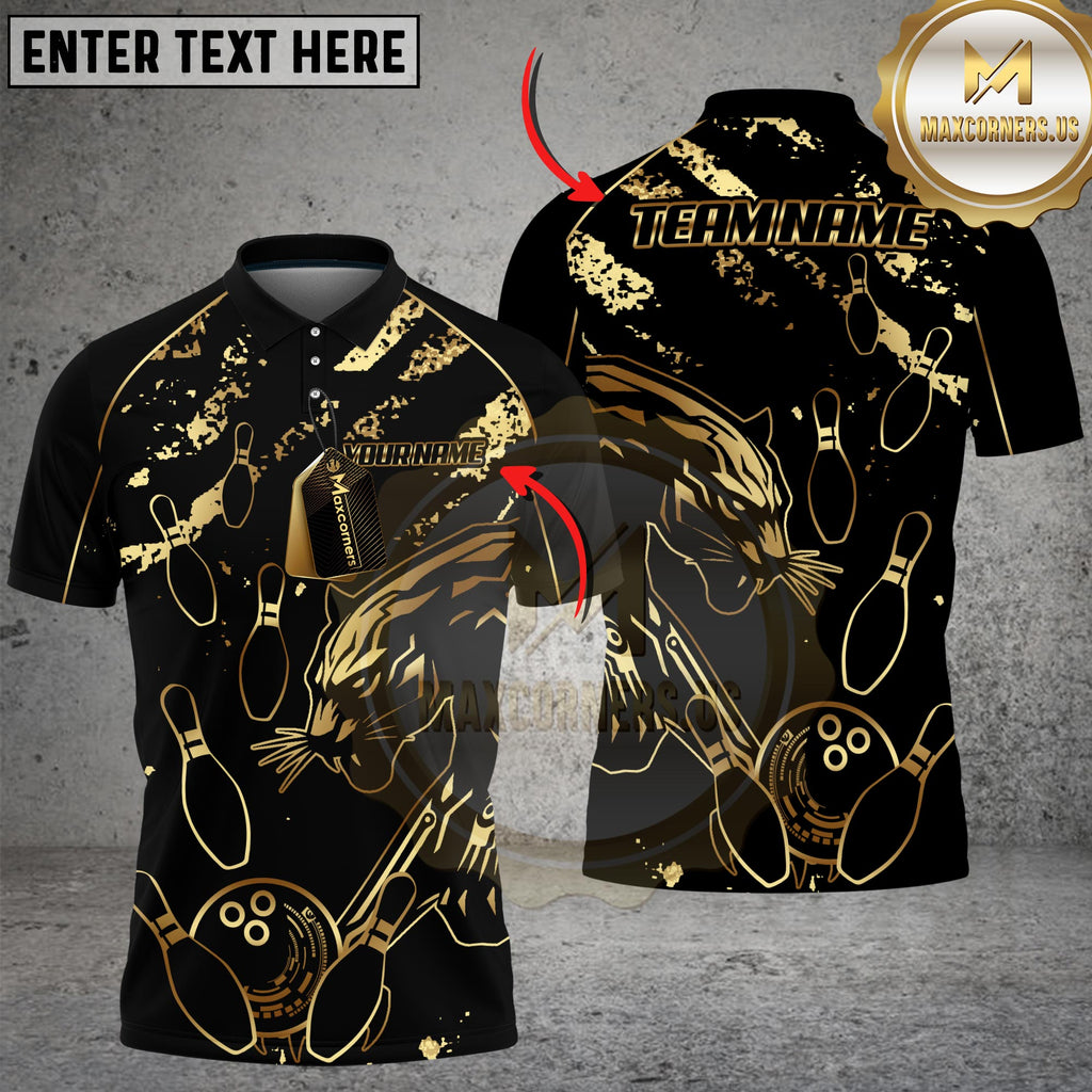 Maxcorners Bowling Golden Panther Multicolor Customized Name, Team Name 3D Shirts