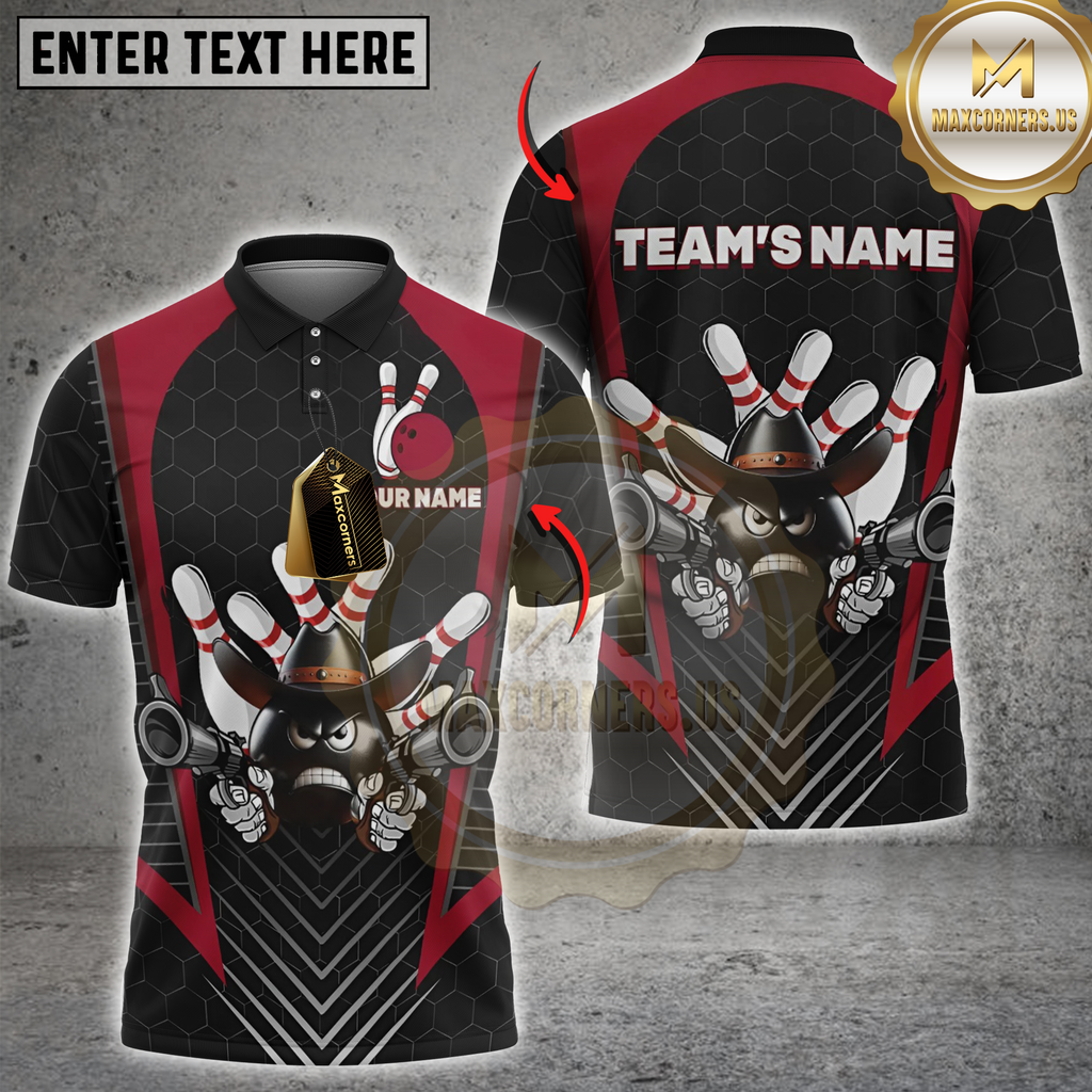 Maxcorners Cowboy Bowling Strike Multicolor Customized Name, Team Name 3D Shirts