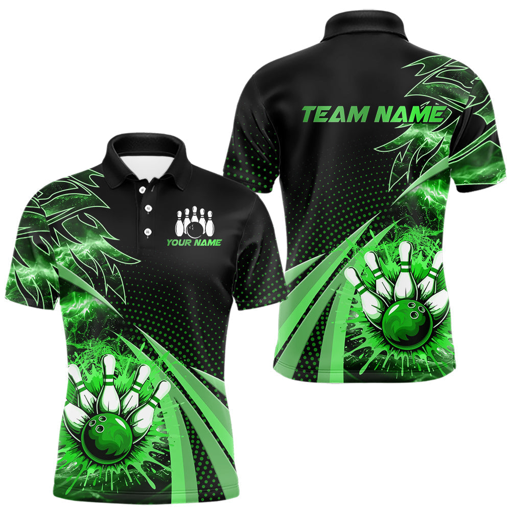 Maxcorners Black and Green Bowling Polo, Quarter zip shirts For Men Custom Team Bowling Jersey, Gift For Bowlers LM0210