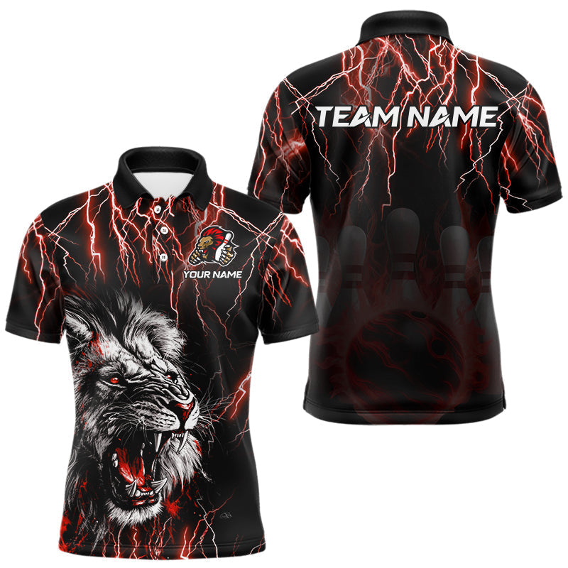 Maxcorners Black and Red Lightning Thunder Lion Bowling Shirt For Men Custom Lion Bowling Team Jerseys MT0811