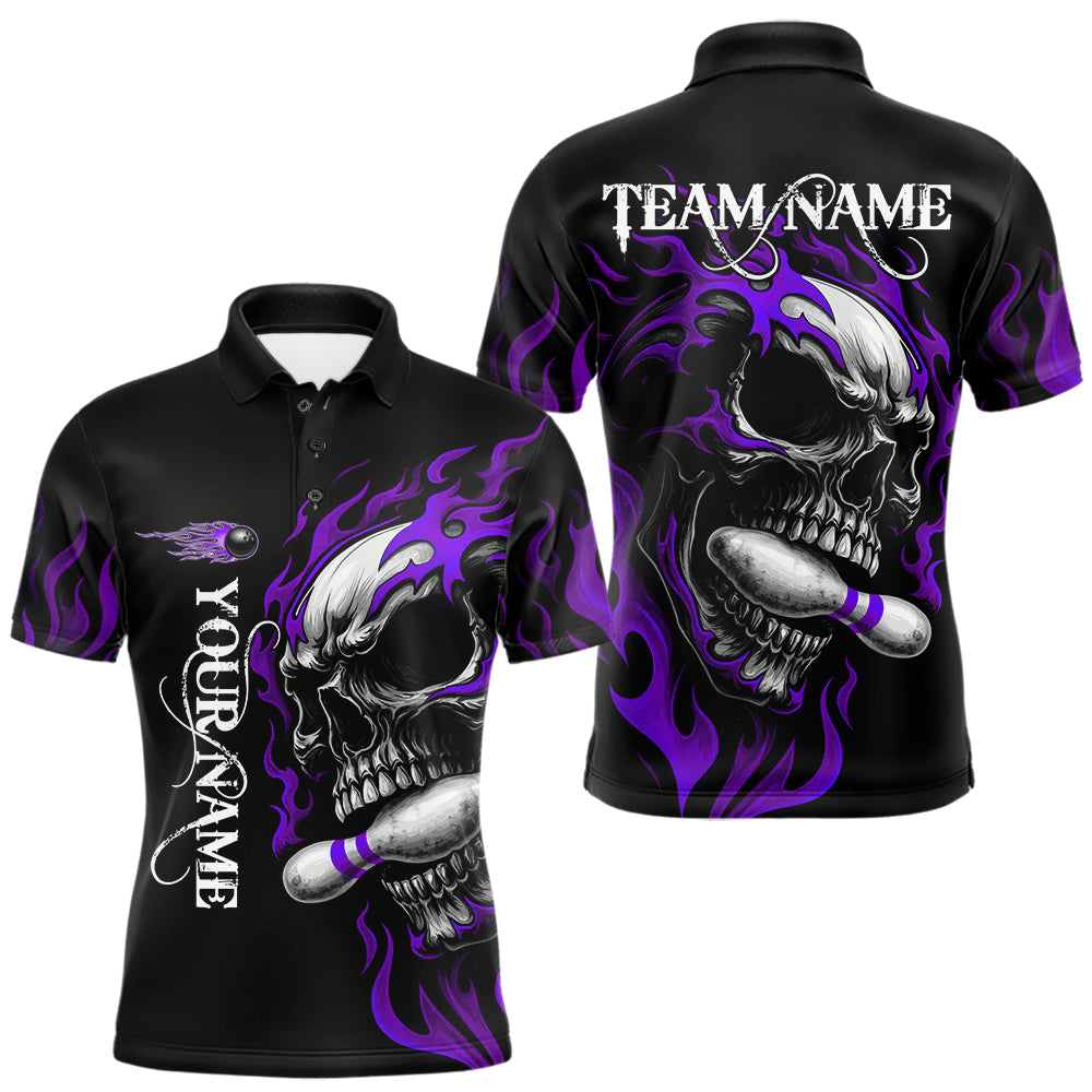 Maxcorners Custom Black and Purple Flame Skull Bowling Shirts For Men, Personalized Skull Team Bowling Jersey MT0410