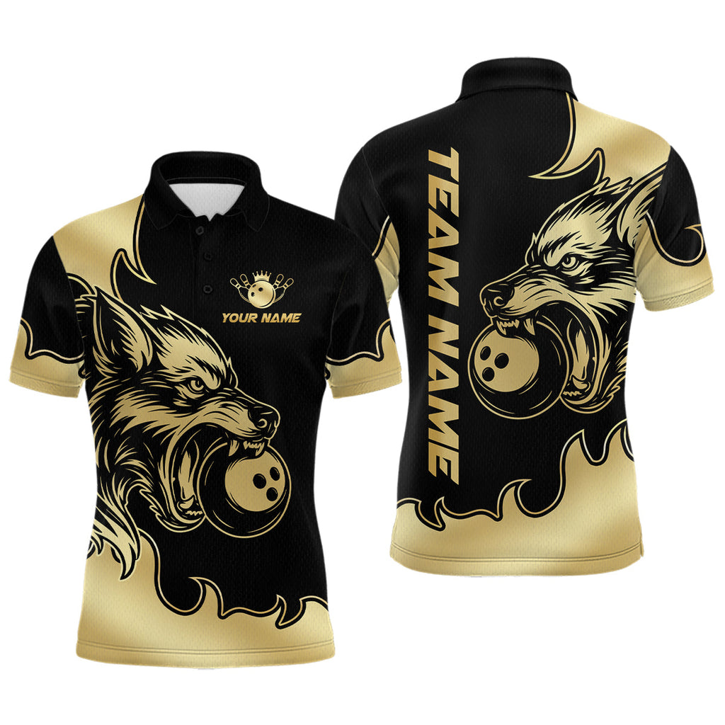 Maxcorners Gold Wolf Bowling Shirts for Team Women Men Custom Wolf Bowling Polo & Quarter Zip LM3010