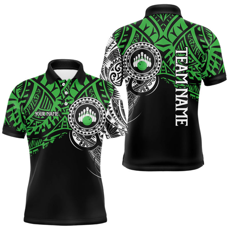 Maxcorners Personalized Black and Green Tribal pattern Mens Bowling Shirts Custom Team Bowling outfit for men MT2709