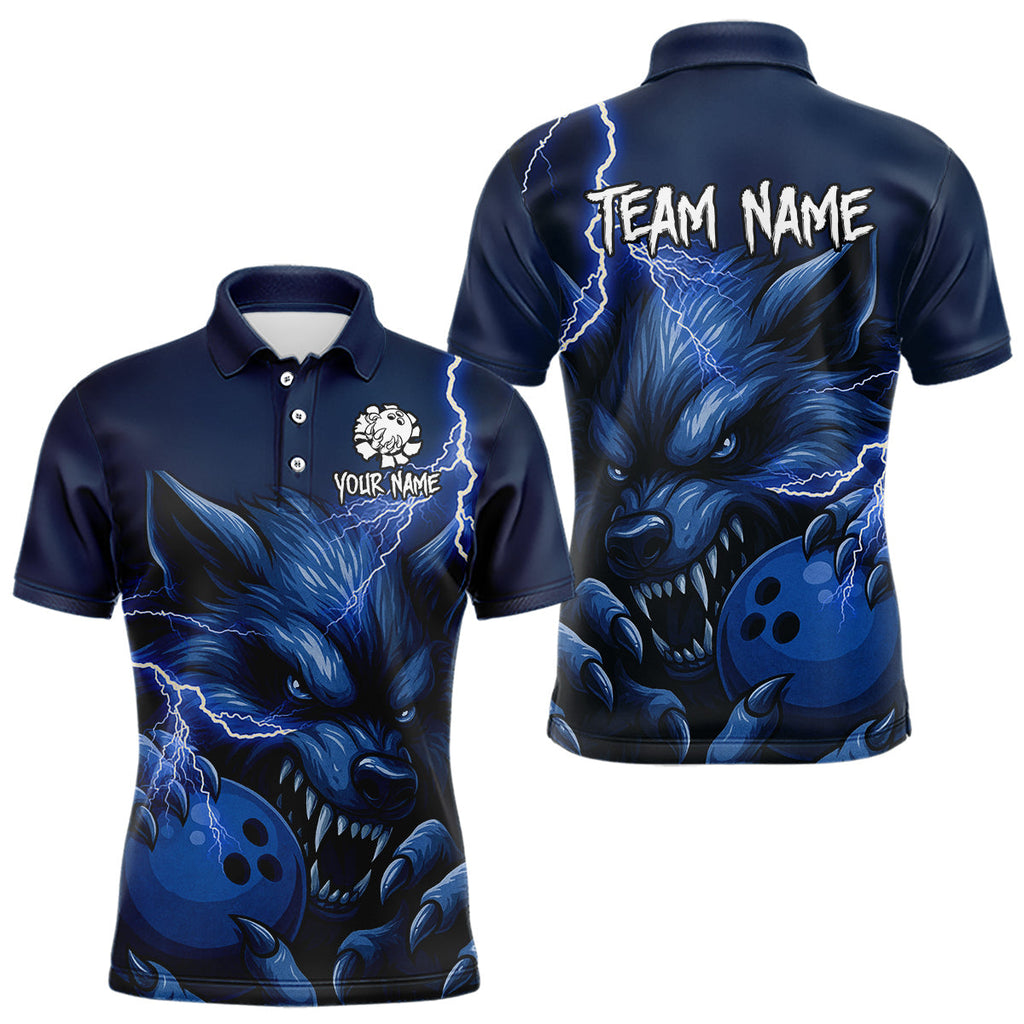 Maxcorners Wolf Bowling Shirts for Team Women Men Custom Blue Wolf Bowling Polo and 1/4 Zip LM3010