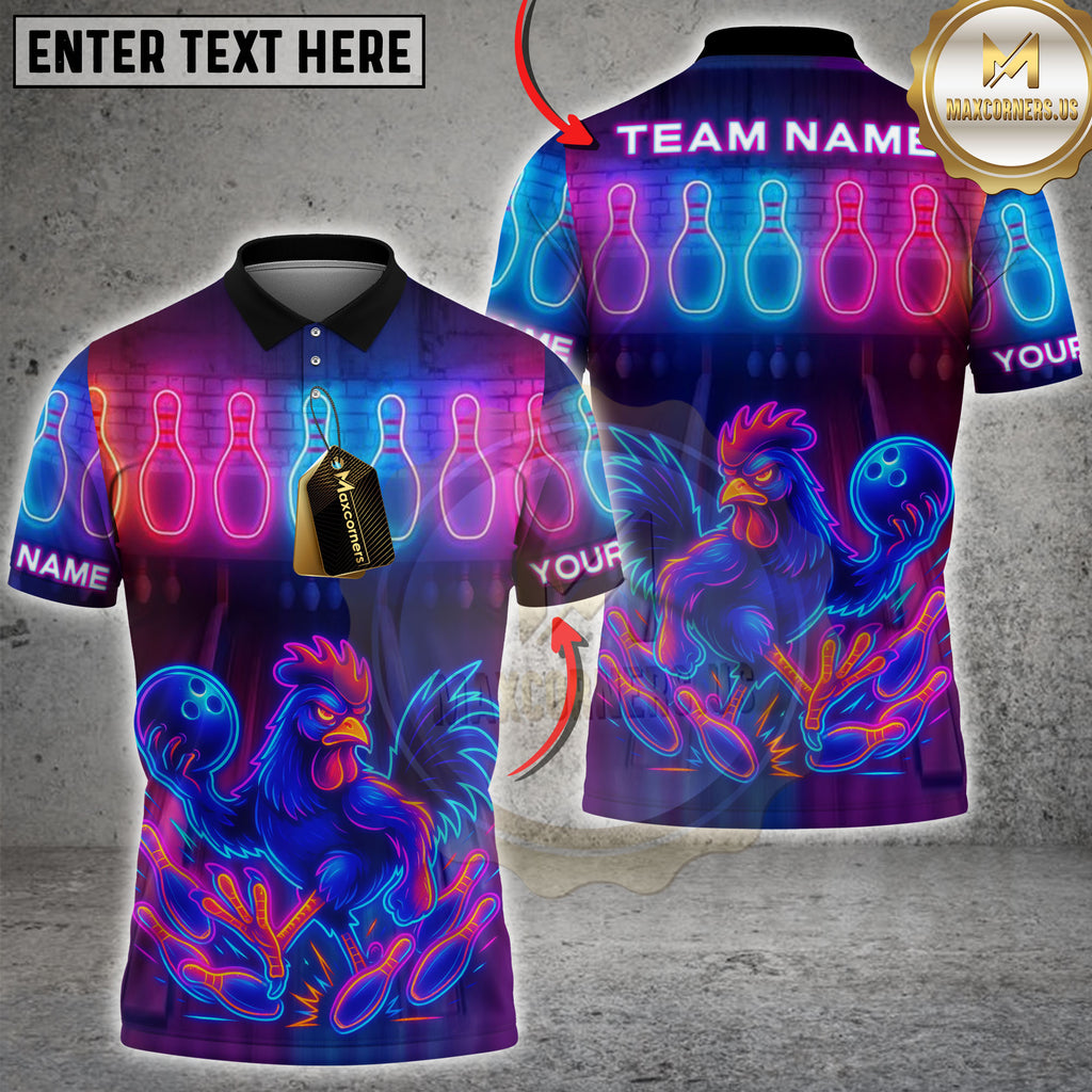 Maxcorners Bowling Neon Rooster Personalized Name 3D Unisex Shirt