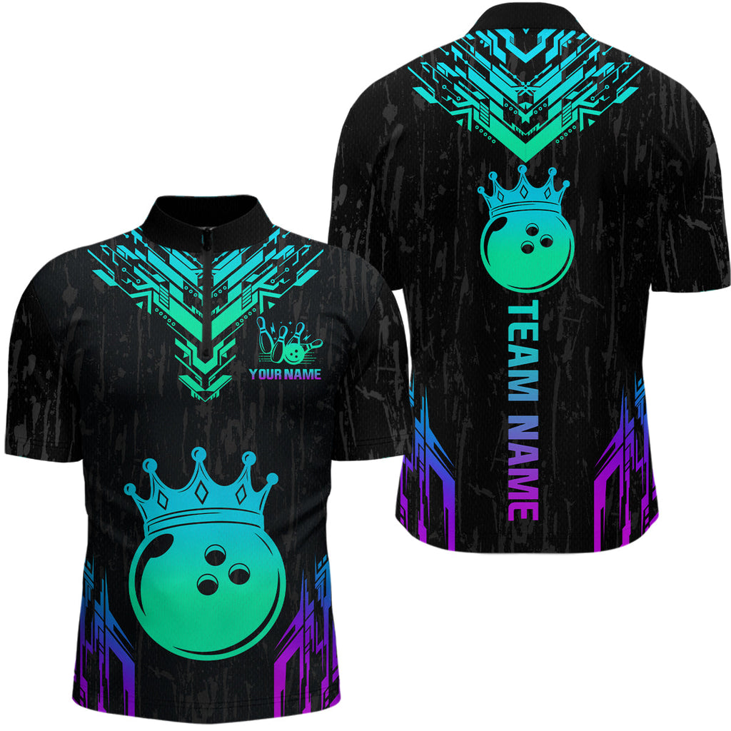 Maxcorners Custom Black Neon Crown Bowling Jersey for Men Bowling Uniform Polo & 1/4 Zip Bowling Team Shirts MT2009