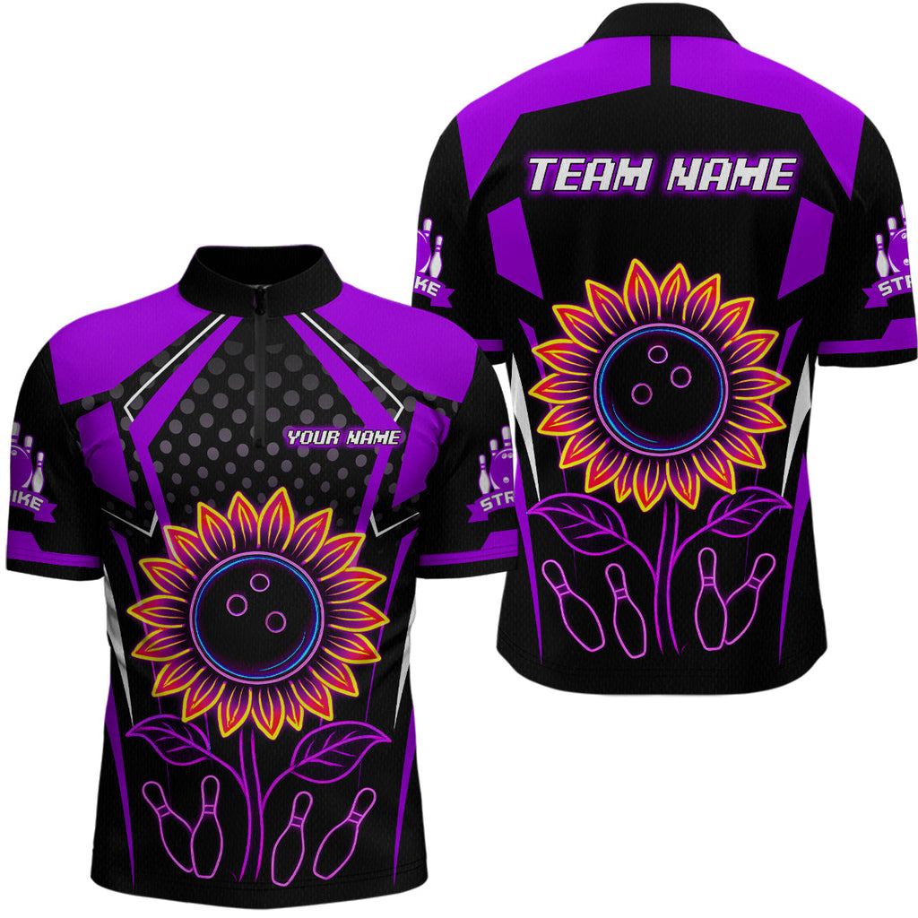 Maxcorners Purple Neon Lightning Sunflower Bowling Shirt for Men Custom Team Bowling Polo Bowling Jersey MT1309