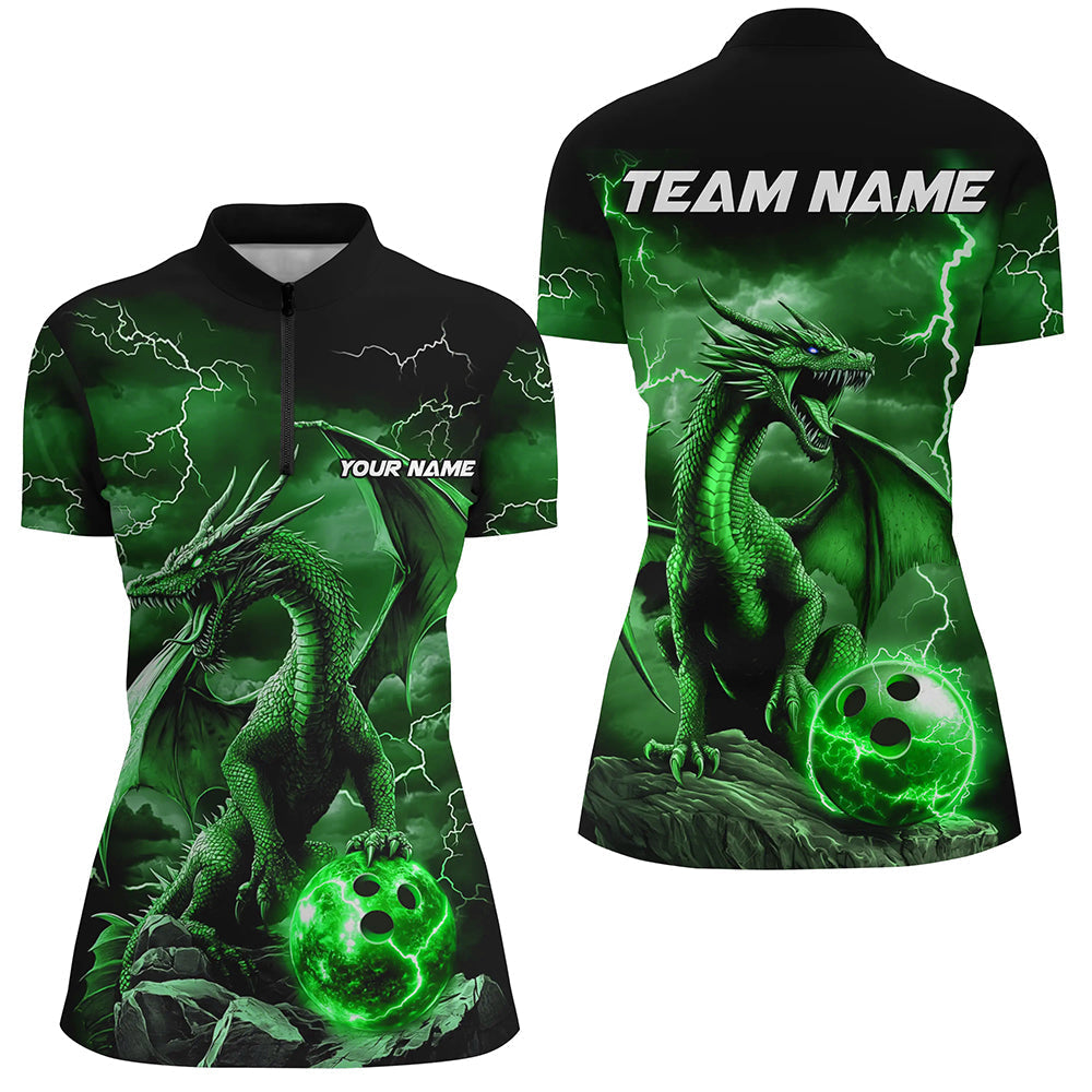 Maxcorners Black And Green Thunder Lightning Custom Dragon Ladies Bowling Team Shirts, Bowling Uniform
