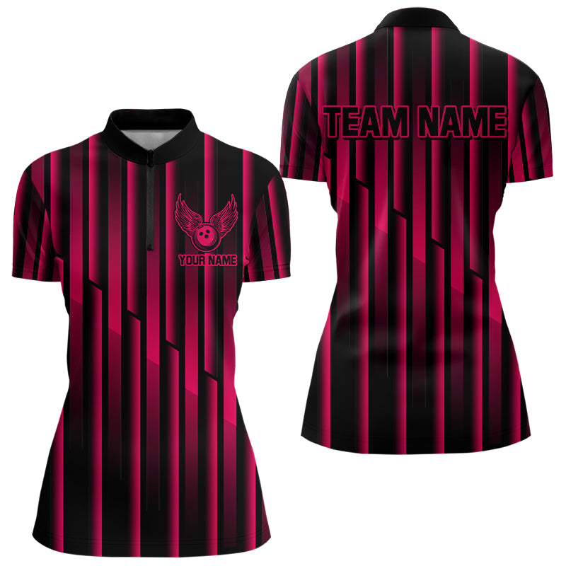 Maxcorners Black And Pink Neon Light Pattern Bowling Polo Shirt For Women Custom Team Bowling Jersey