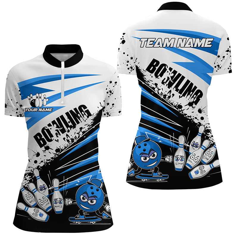 Maxcorners Funny black and white Bowling Polo, Quarter Zip Shirt for Women Custom Team Bowling jerseys