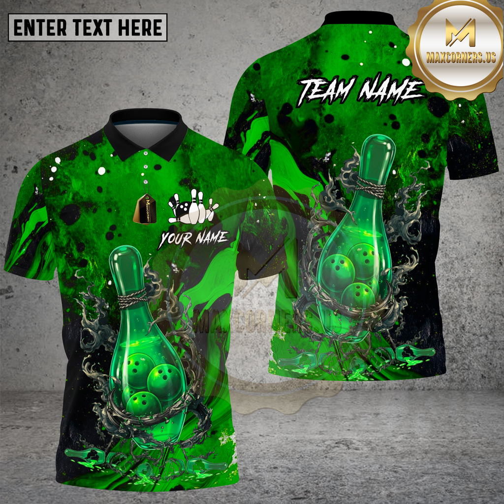 Maxcorners Bowling Shirt Bowling Bottle Flame Graphic Multi Options Personalized Name, Team Name 3D Shirt