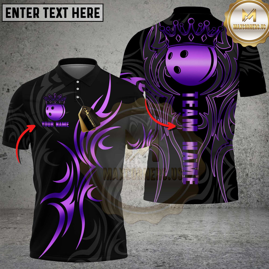 Maxcorners Bowling Shirt Royal Crown Gold Bowling Ball Multioptions Personalized Name, Team Name Unisex 3D Shirt